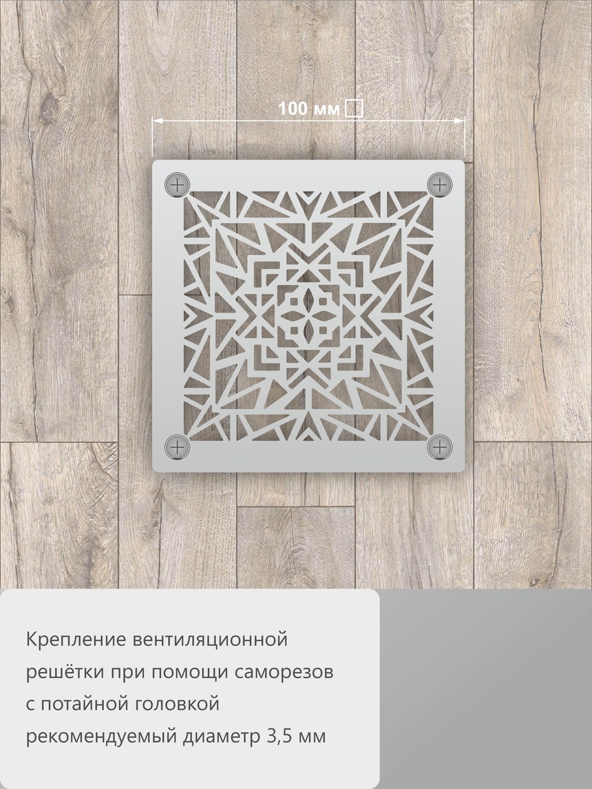 Решетка «Геометрия» представляет собой современный абстрактный узор из строгих линий и фигур. Такой рисунок для ценителей минимализма и чистых форм, дополнит интерьеры в стиле лофт, хай-тек, минимализм или скандинавский стиль. Отлично подходит для монтажа в подвесных потолках, стенах и полах кухонь, санузлов и технических помещений. Идеальна для интеграции в системы вентиляции деревянных домов, бань и саун.
