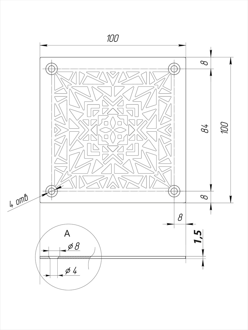 Декоративная решетка «Геометрия»100х100 мм из нержавеющей стали