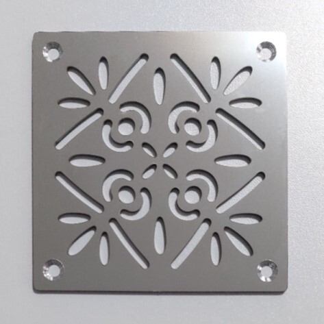 Четкие геометрические линии и формы создают ощущение порядка и гармонии. Изготовлена из высококачественной нержавеющей стали AISI 304 (1,5 мм) с использованием точной перфорации. Изящный цветочный рисунок не препятствует воздушному потоку (площадь сечения ~28%).