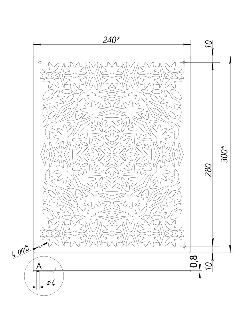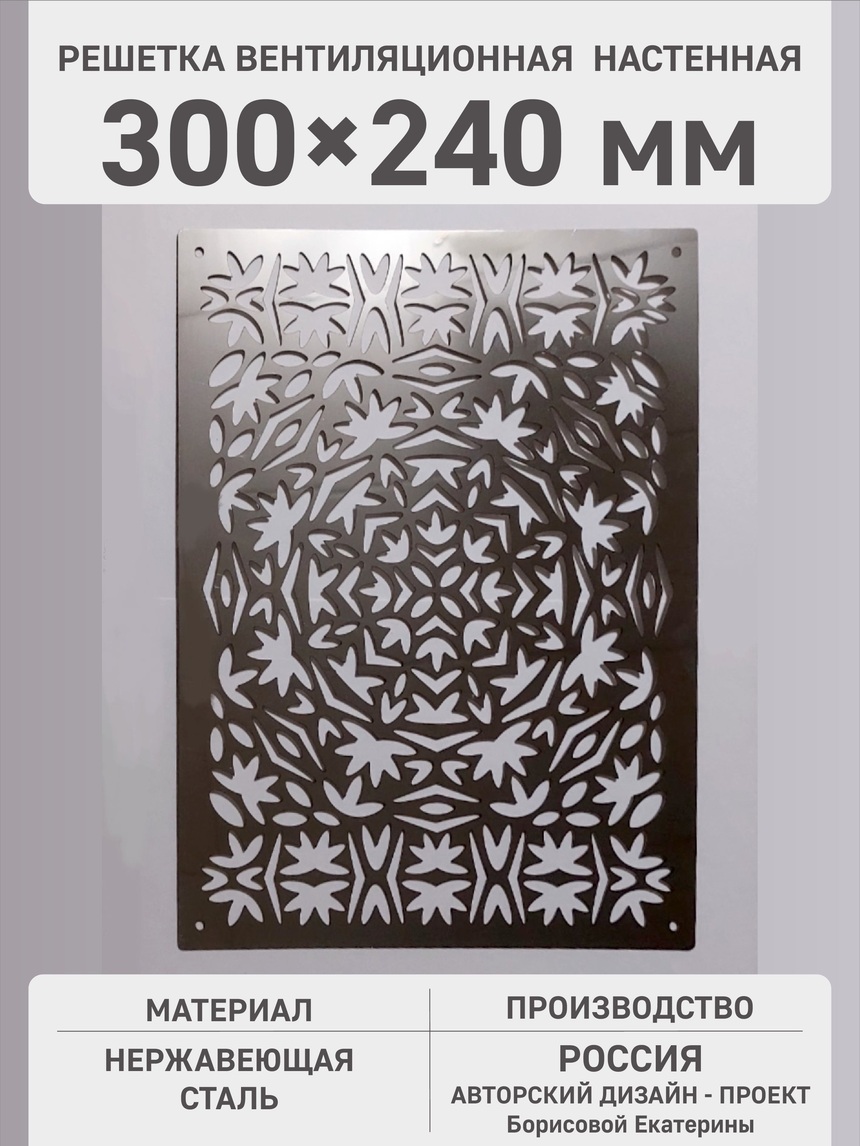 Декоративная решётка "Осенний узор" из нержавеющей стали 240х300 мм