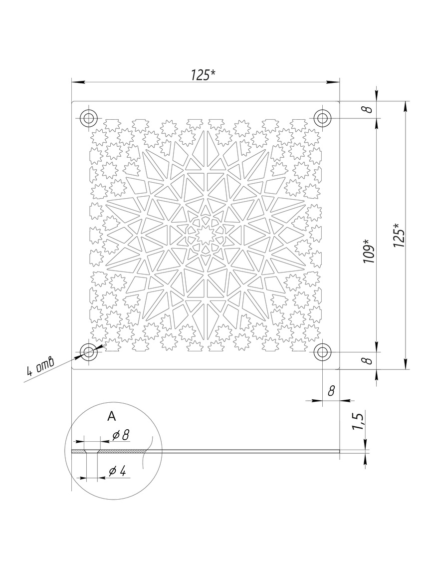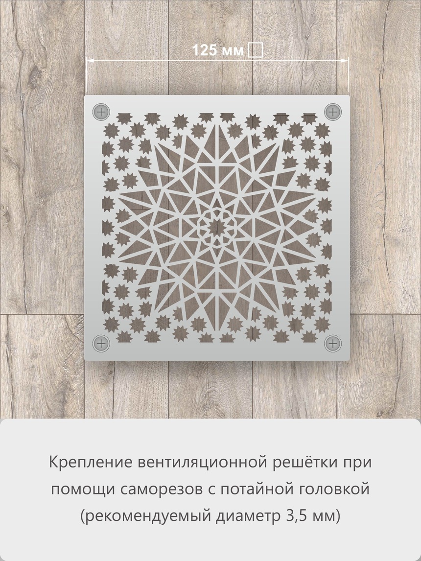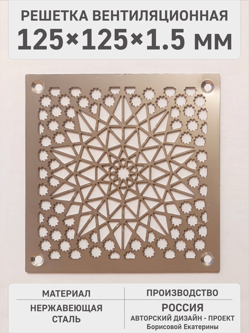 Решетка из нержавеющей стали «Звездное небо» это интересный узор в виде одной акцентной большой и многих маленьких звездочек создает эффект оптической глубины и динамики. Это идеальный выбор для рабочего кабинета, гостиной или детской комнаты. Компактный квадратный формат делает решетку очень универсальной в использовании.