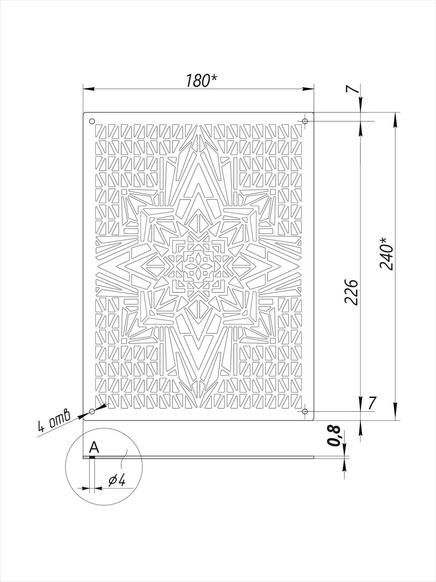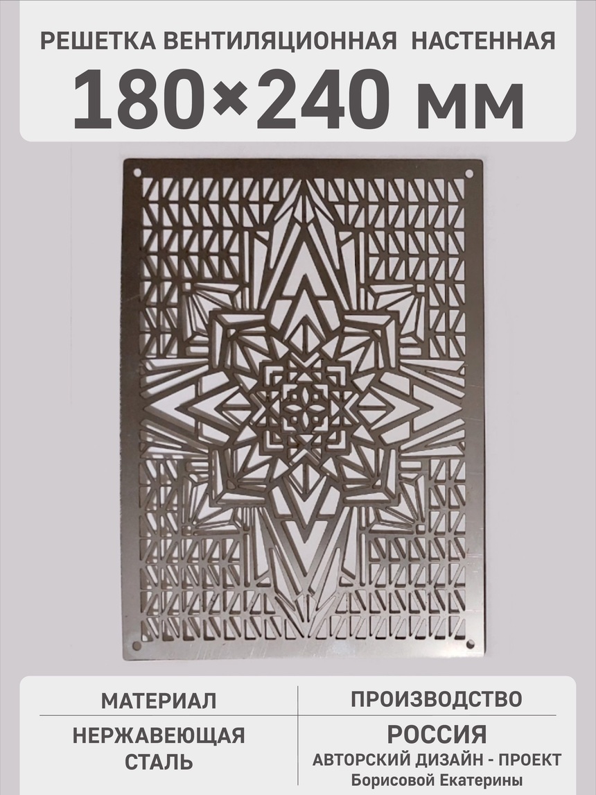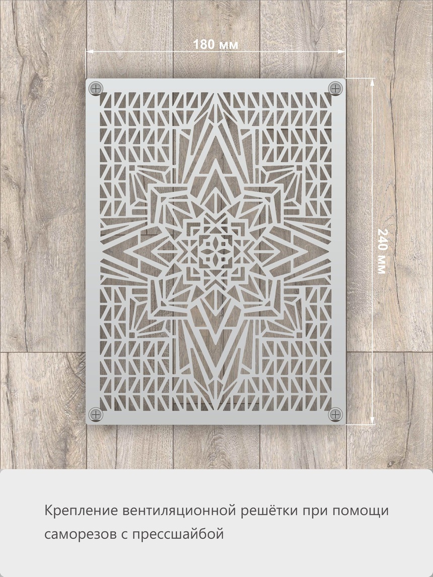 Решетка с орнаментом «Звезда» станет интересной деталью в вашем интерьерном решении. Её универсальный дизайн подойдет как для жилых комнат, так и для коммерческих помещений: кафе, отелей, магазинов, в том числе помещений с повышенным уровнем влажности: бань, бассейнов и т.д..