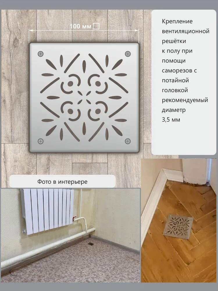 Вентиляционная решётка напольная матовая 100х100 мм