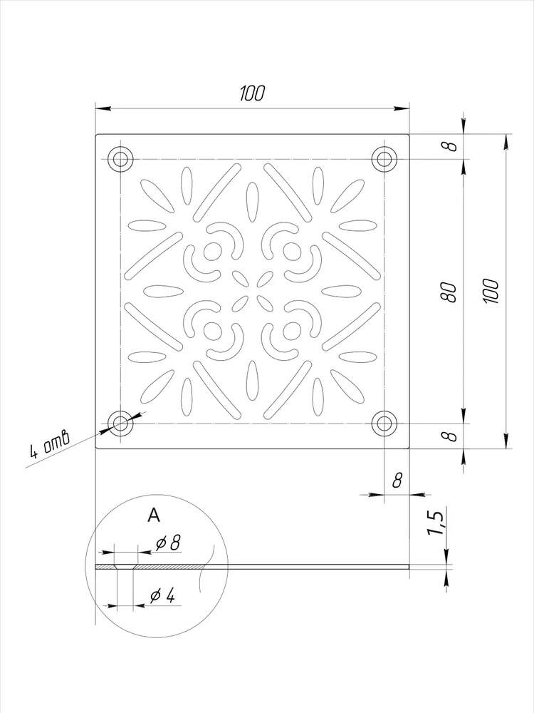 Решётка в размере 100x100 мм, что позволяет ей легко интегрироваться с другими элементами системы вентиляции