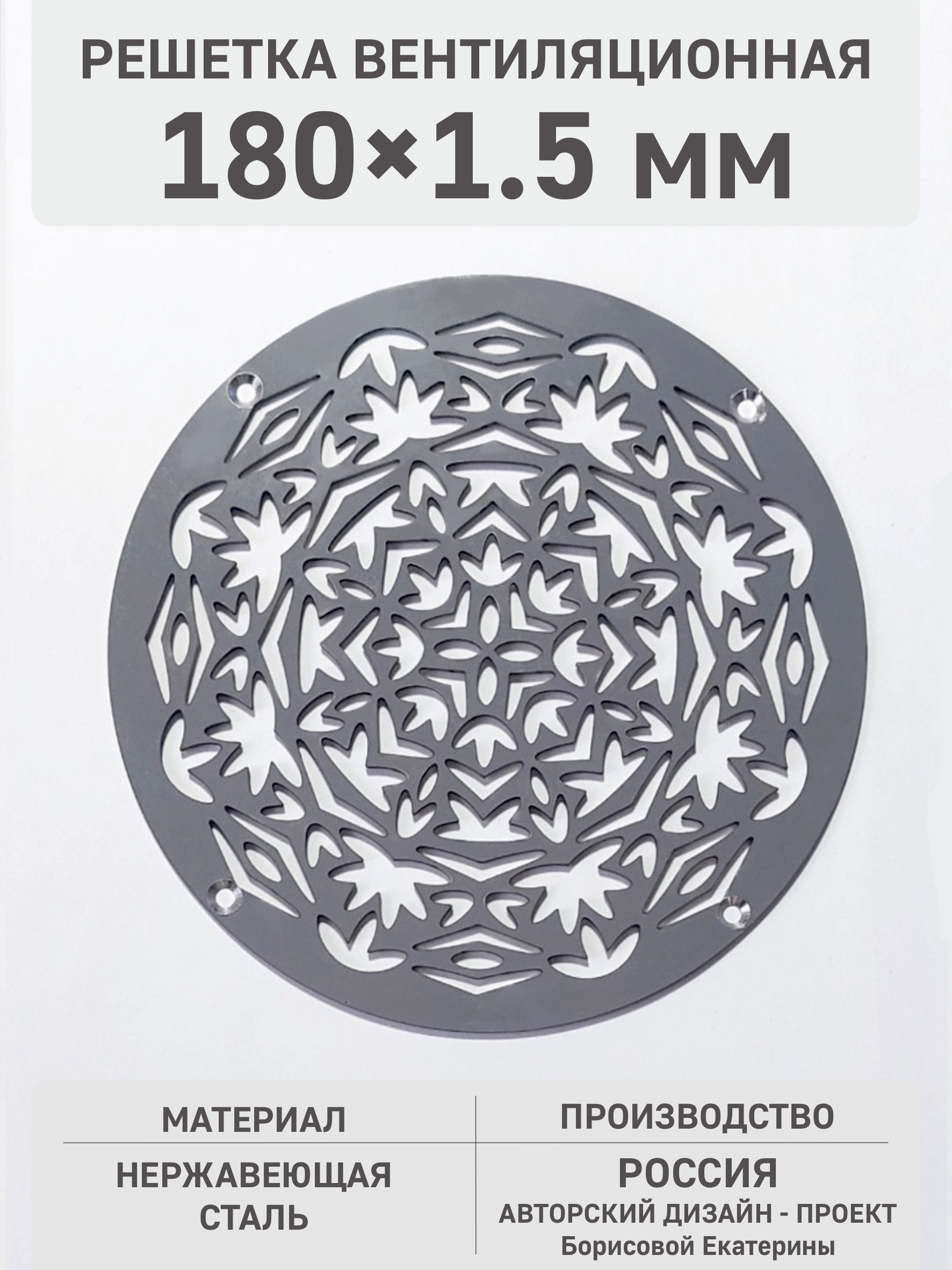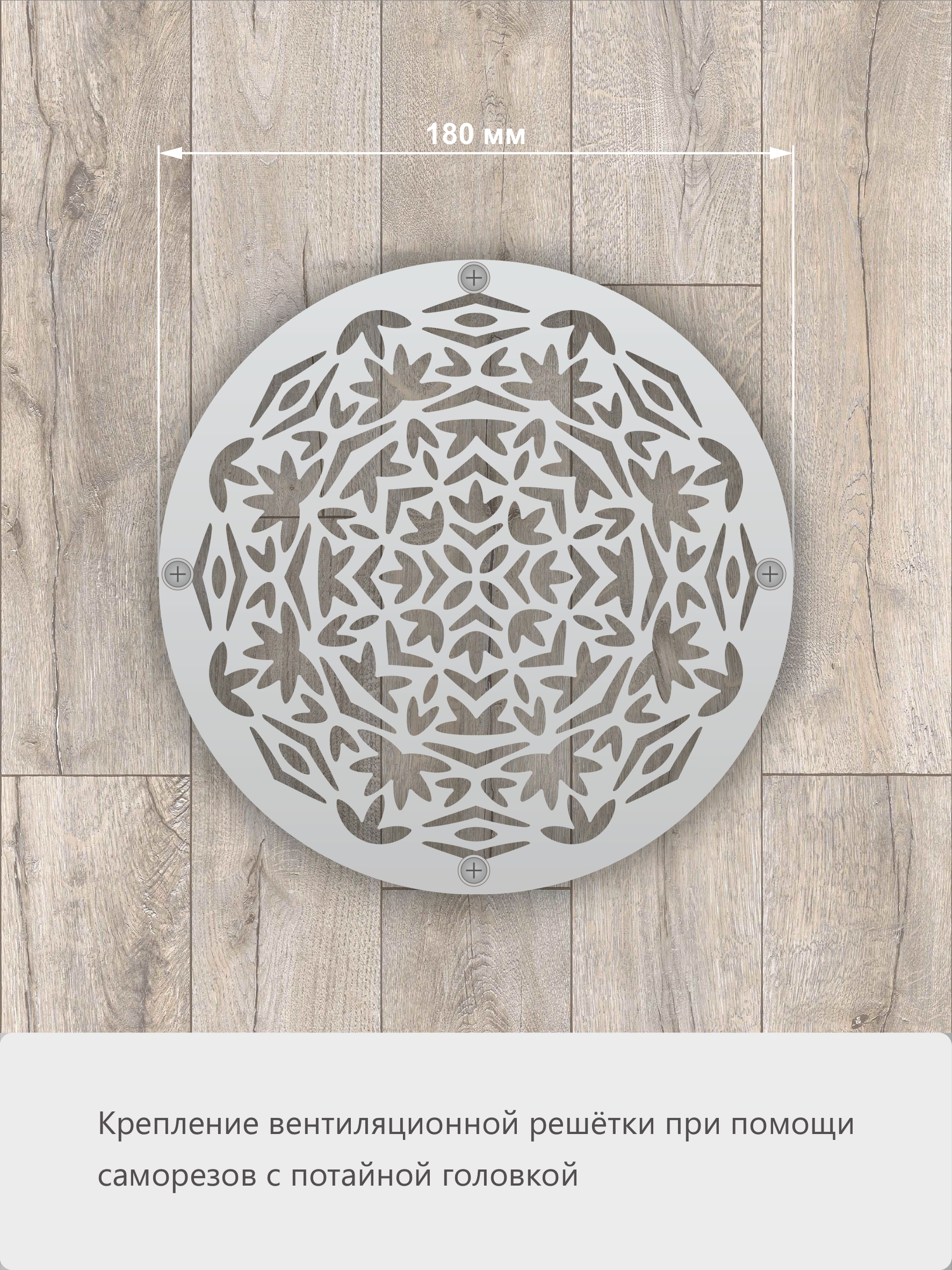 Крупная круглая решетка «Осенний орнамент» — это яркий декоративный элемент. Декоративный узор, вдохновлен природой. Благодаря значительному диаметру, она идеально подходит для оформления вентиляционных отверстий в полах и стенах загородных домов, каминных экранов или в качестве основы для столешницы из стекла.Изготовленная из прочной нержавеющей стали AISI 304, решетка не деформируется под нагрузкой и сохранит хороший вид на долгие годы.