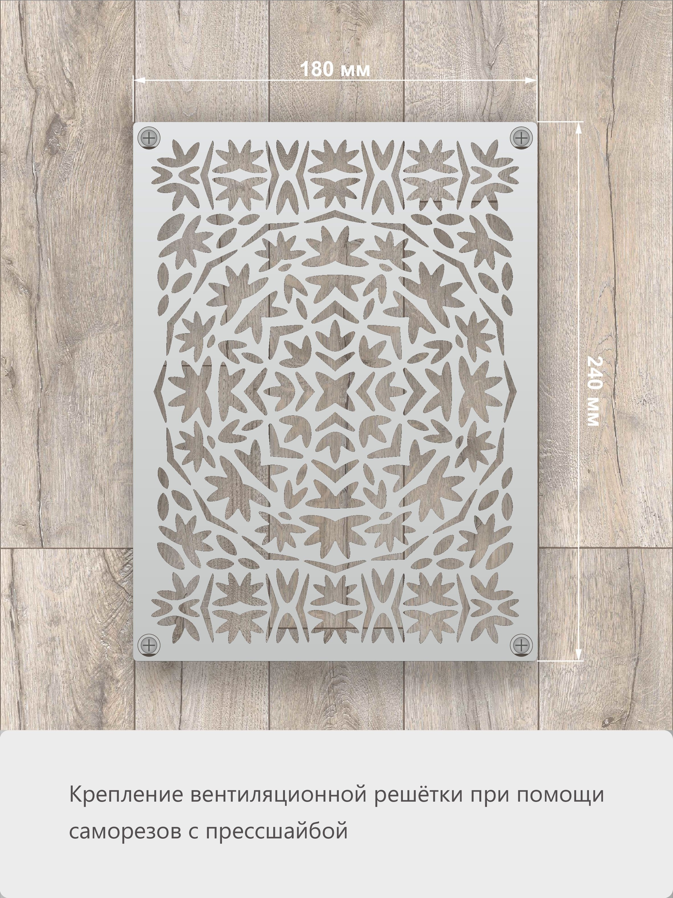 Решетка со стилизованными природными мотивами гармонично сочетает функциональность и эстетику, эффективно скрывая вентиляционные отверстия. Она станет изящным элементом декора на стене, жилых комнат, помещений с повышенным уровнем влажности, коммерческих помещениях обеспечивая беспрепятственную циркуляцию воздуха.