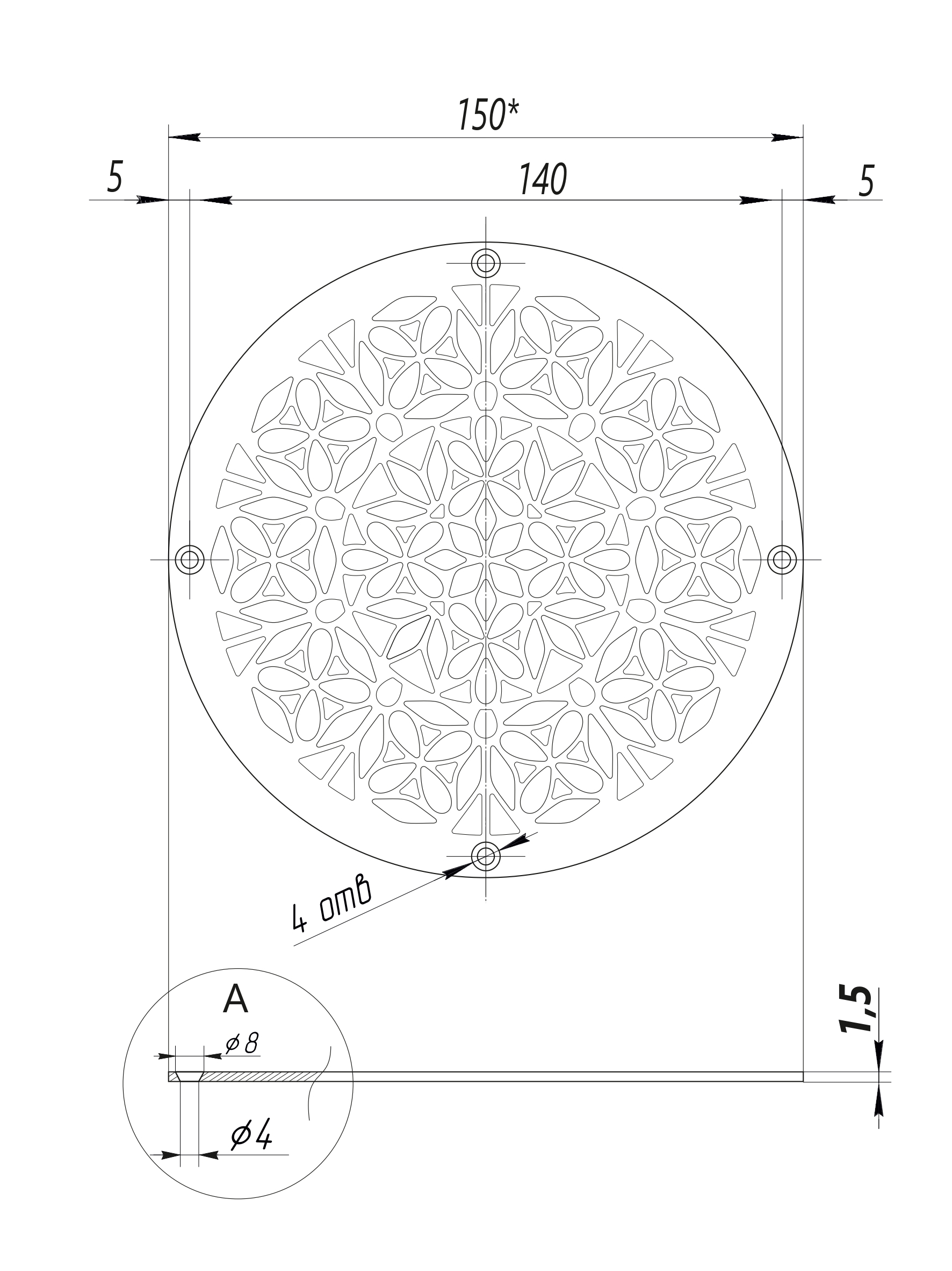 Крупная круглая решетка «Осенний букет» станет ярким декоративным элементом для создания акцента в интерьере. Богатый и детализированный узор, вдохновленный природой, выглядит эффектно. Благодаря выбранному диаметру, изделие идеально подходит для оформления вентиляционных отверстий в полах и стенах загородных домов, каминных экранов или в качестве основы для столешницы из стекла. Изготовленная из прочной нержавеющей стали AISI 304, решетка не деформируется под нагрузкой и сохранит хороший вид.