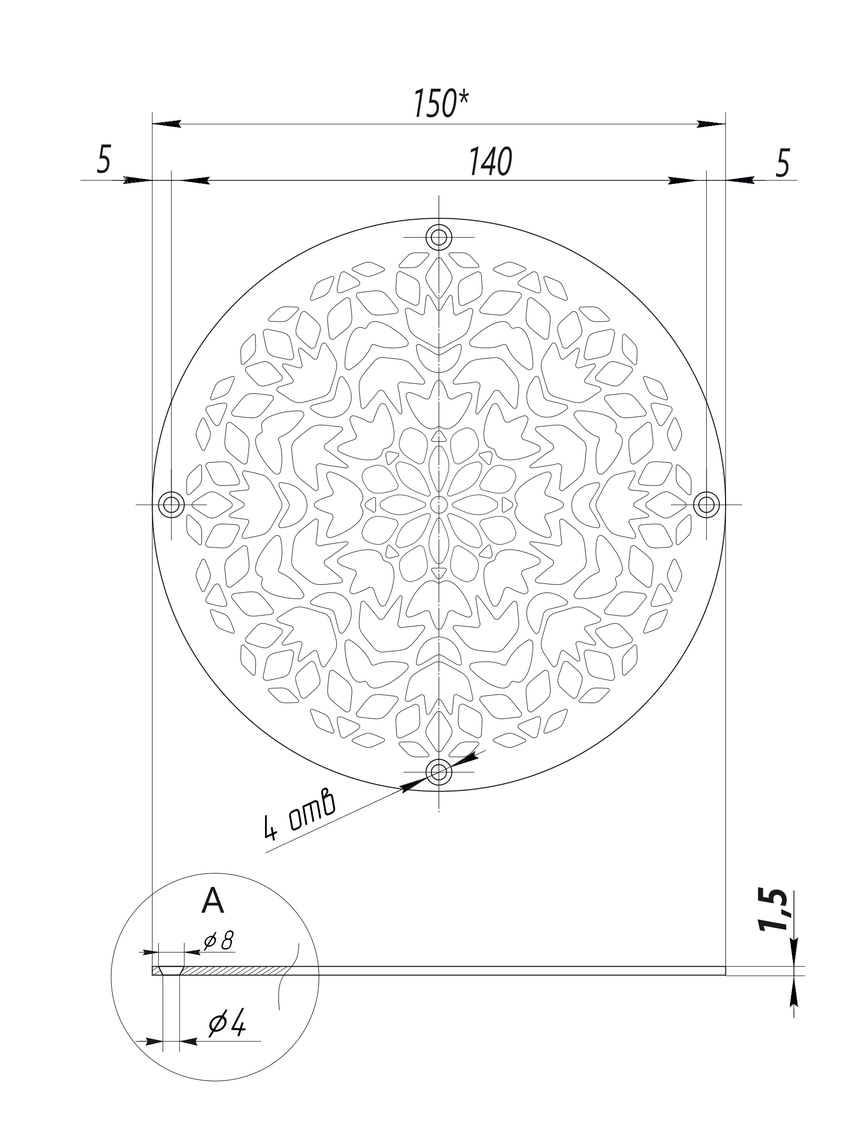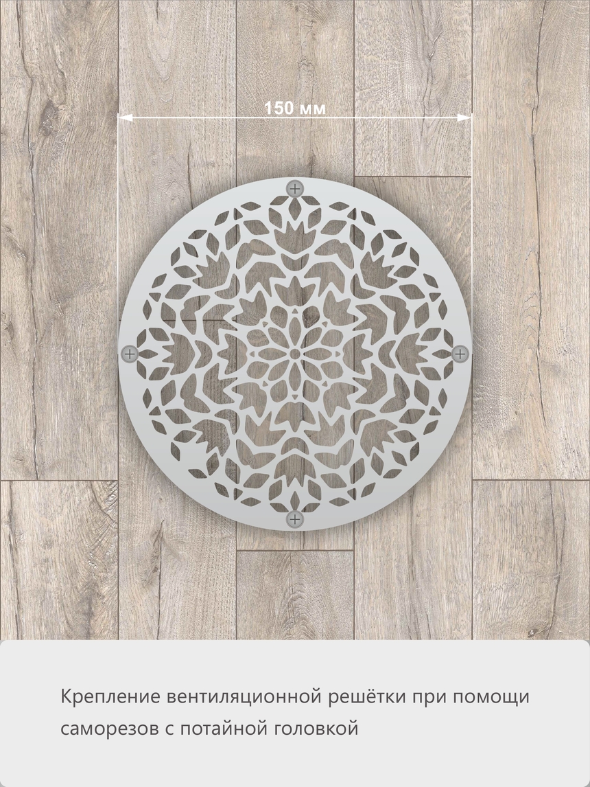 Оживите интерьер с помощью решетки «Осенняя листва»! Дизайн, состоящий из изящных веточек и листочков, создает ощущение свежести и единения с природой. Эта модель отлично впишется в эко-стиль, скандинавский или прованс интерьер. Круглая форма символизирует гармонию, а перфорация в виде листвы пропускает мягкий, рассеянный свет, создавая красивые тени. Нержавеющая сталь AISI 304 обеспечивает устойчивость к влаге и коррозии, делая решетку пригодной даже для сауны или бани.