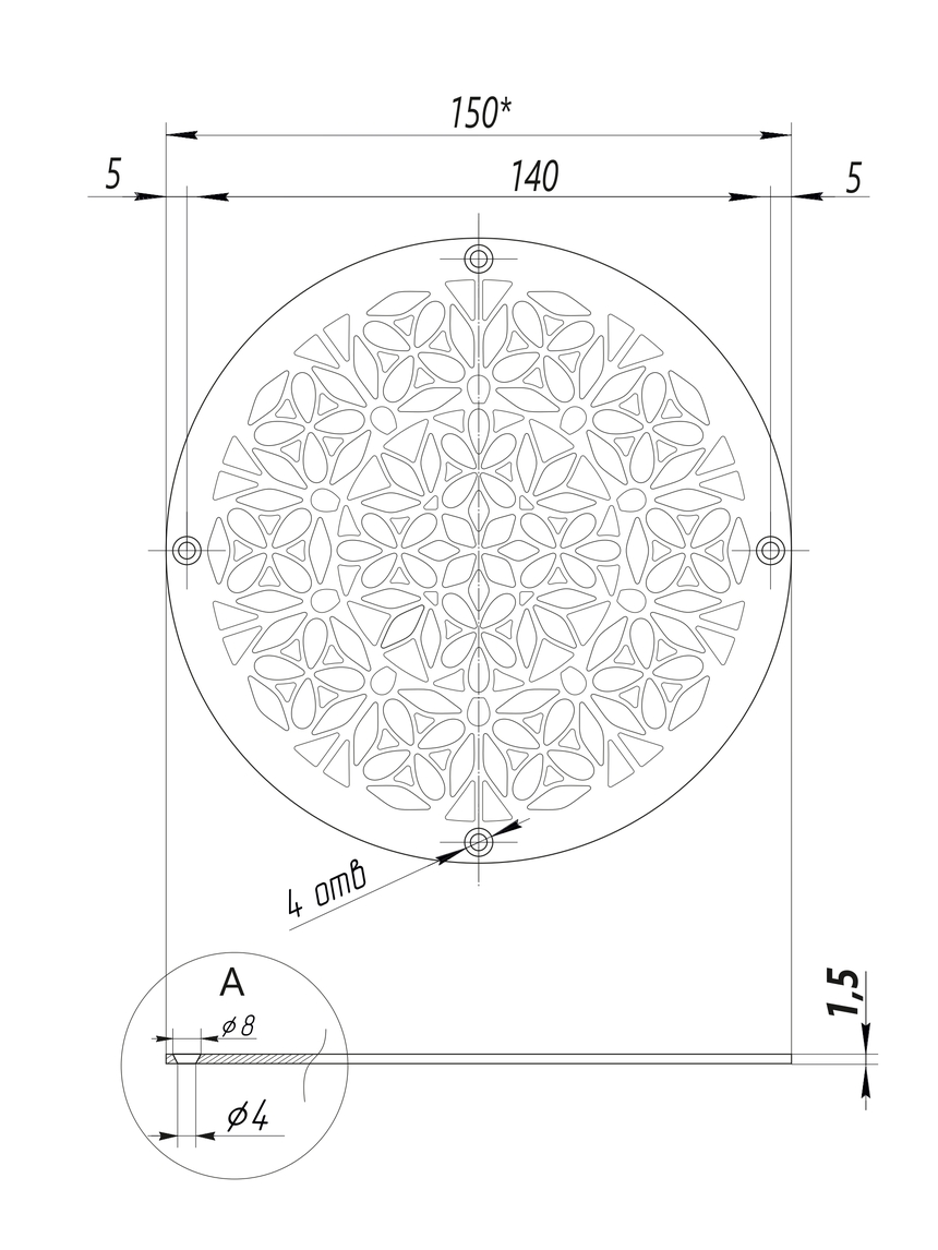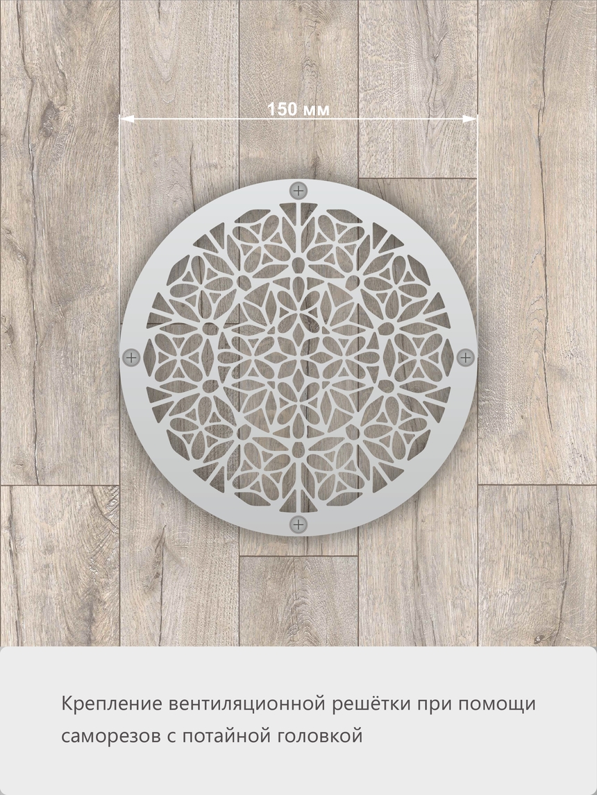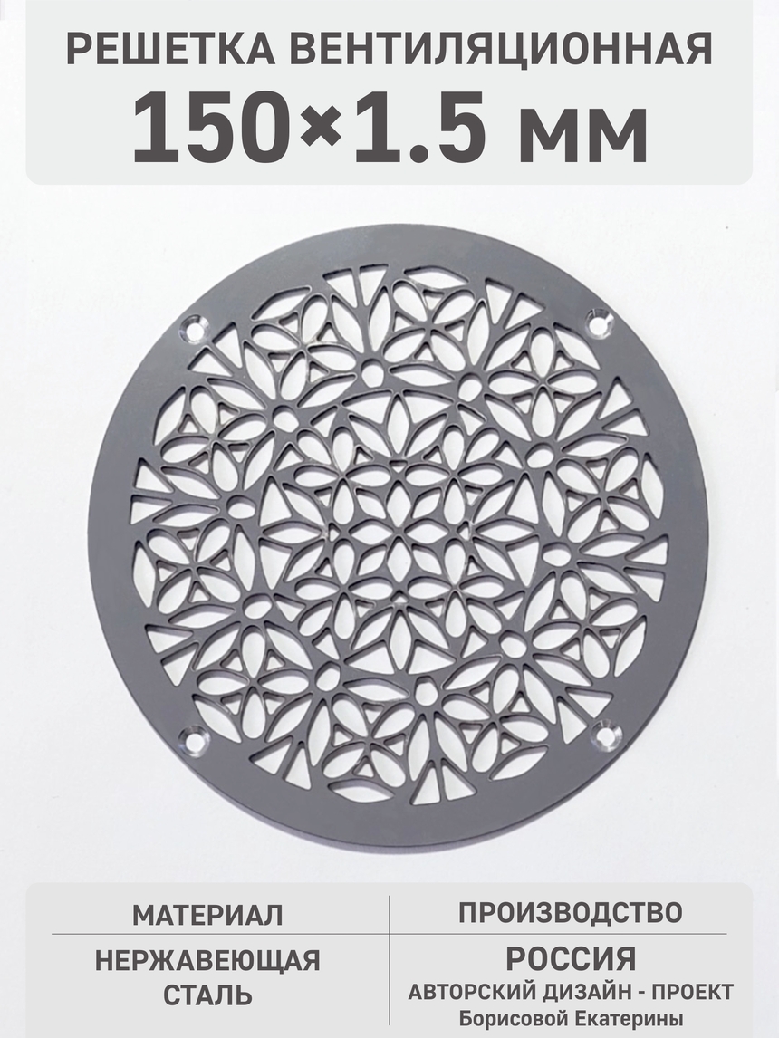 Крупная круглая решетка «Осенний букет» станет ярким декоративным элементом для создания акцента в интерьере. Богатый и детализированный узор, вдохновленный природой, выглядит эффектно. Благодаря выбранному диаметру, изделие идеально подходит для оформления вентиляционных отверстий в полах и стенах загородных домов, каминных экранов или в качестве основы для столешницы из стекла. Изготовленная из прочной нержавеющей стали AISI 304, решетка не деформируется под нагрузкой и сохранит хороший вид.
